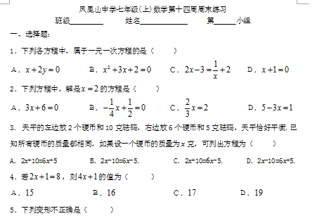 审核评价:该复习资料,侧重一元一次方程的解法及其应用,针对性强.