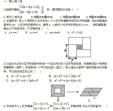• 七年级(下)数学期中复习试题精选