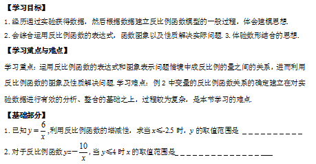 八年级下册 /第六章 反比例函数/6.3 反比例函数的应用