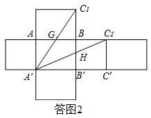 ②苍蝇在顶点C处时,图2中画出了蜘蛛捉住苍蝇的两条路线,往天花板ABCD爬行的最近路线